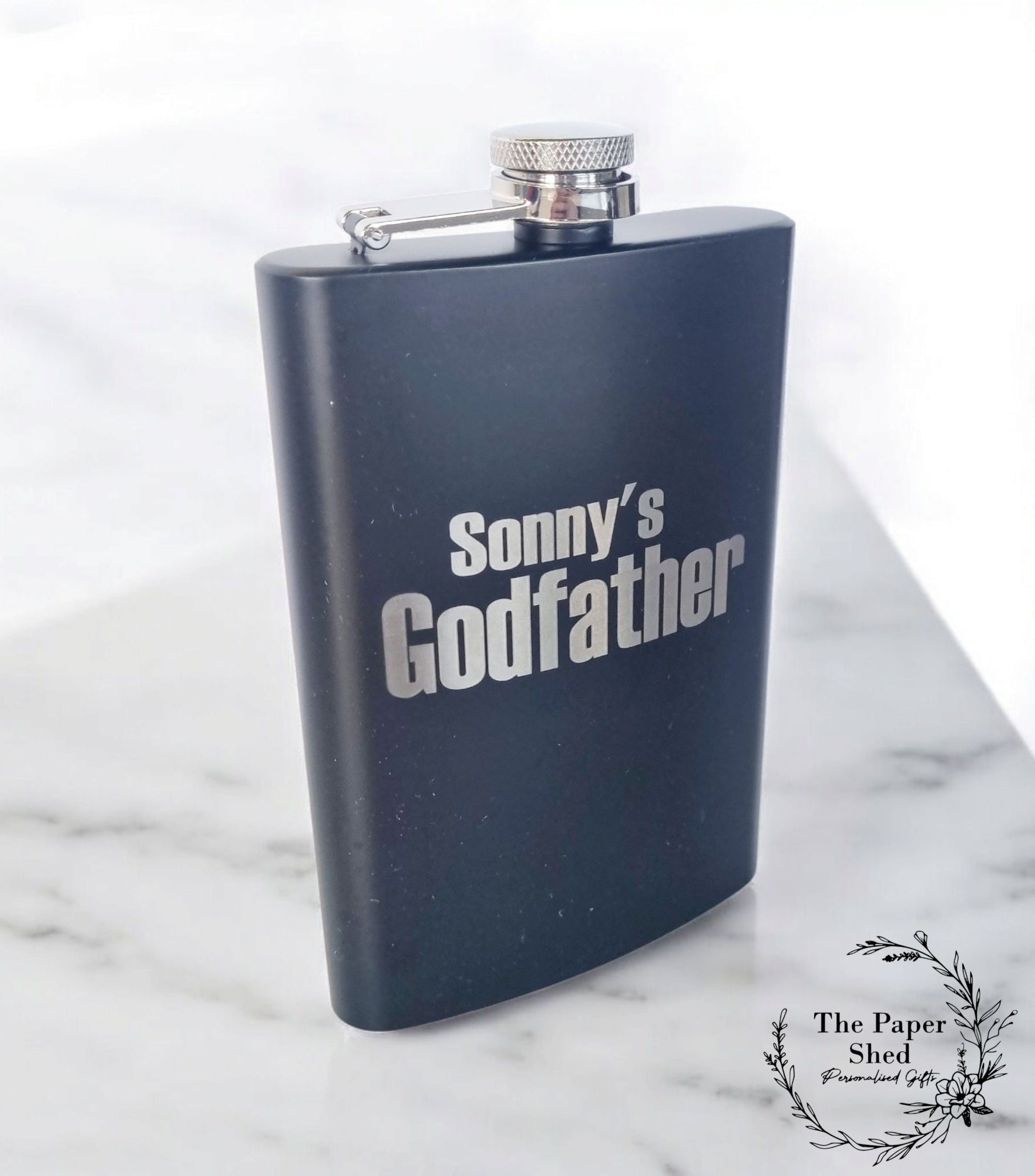 Godfather Gift Engraved Hip Flask Gift Idea, name personalised whisky flask Christening Baptism Gift