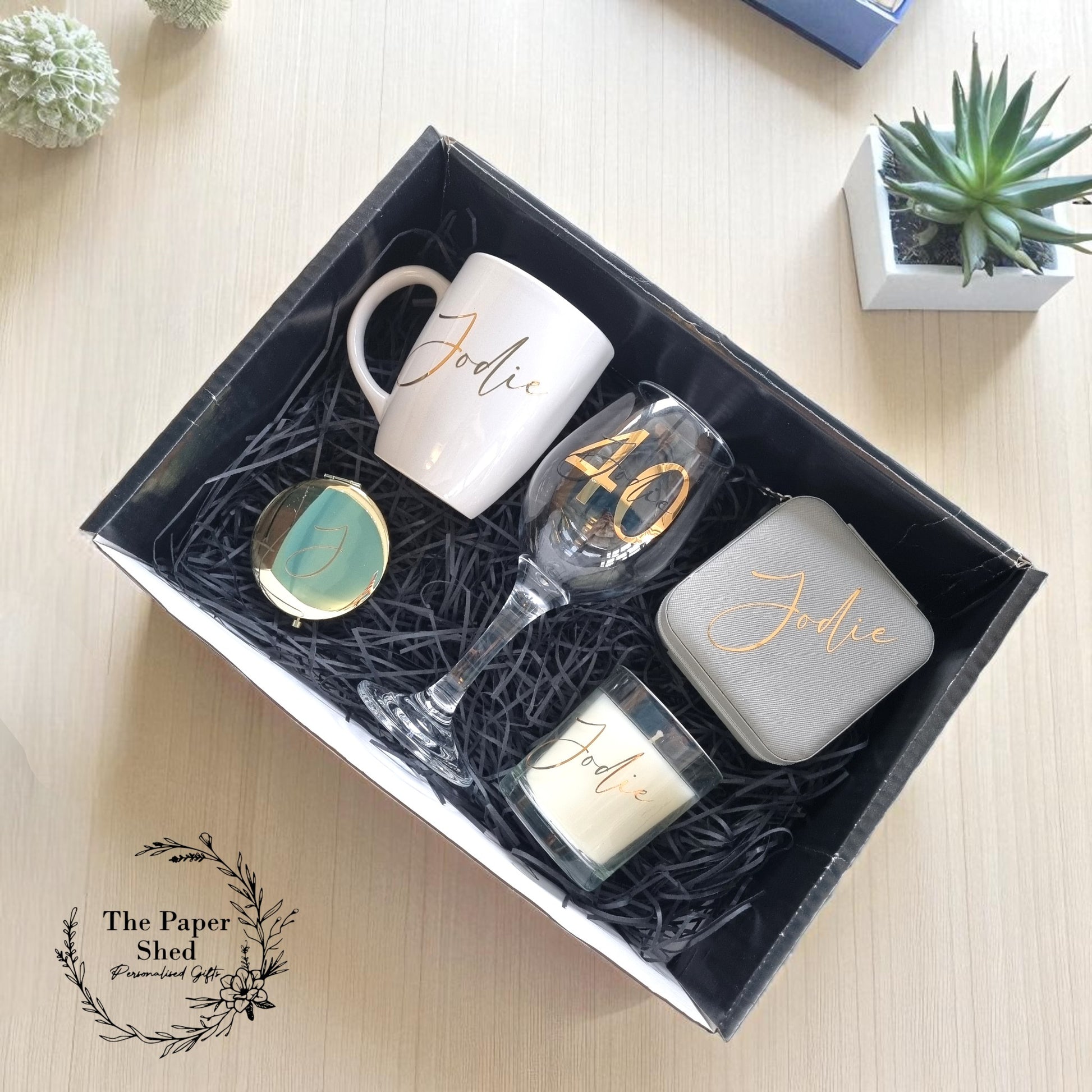 Birthday Hamper Gift Set - Personalised Special Birthday Present -Wine glass- For Her - 21st, 30th, 40th 18th Big Birthday Age number