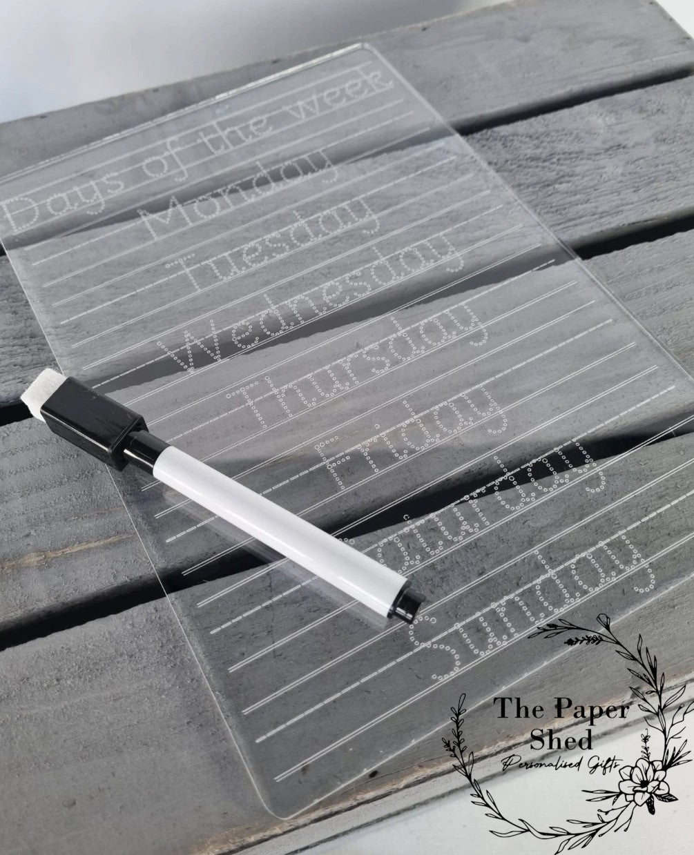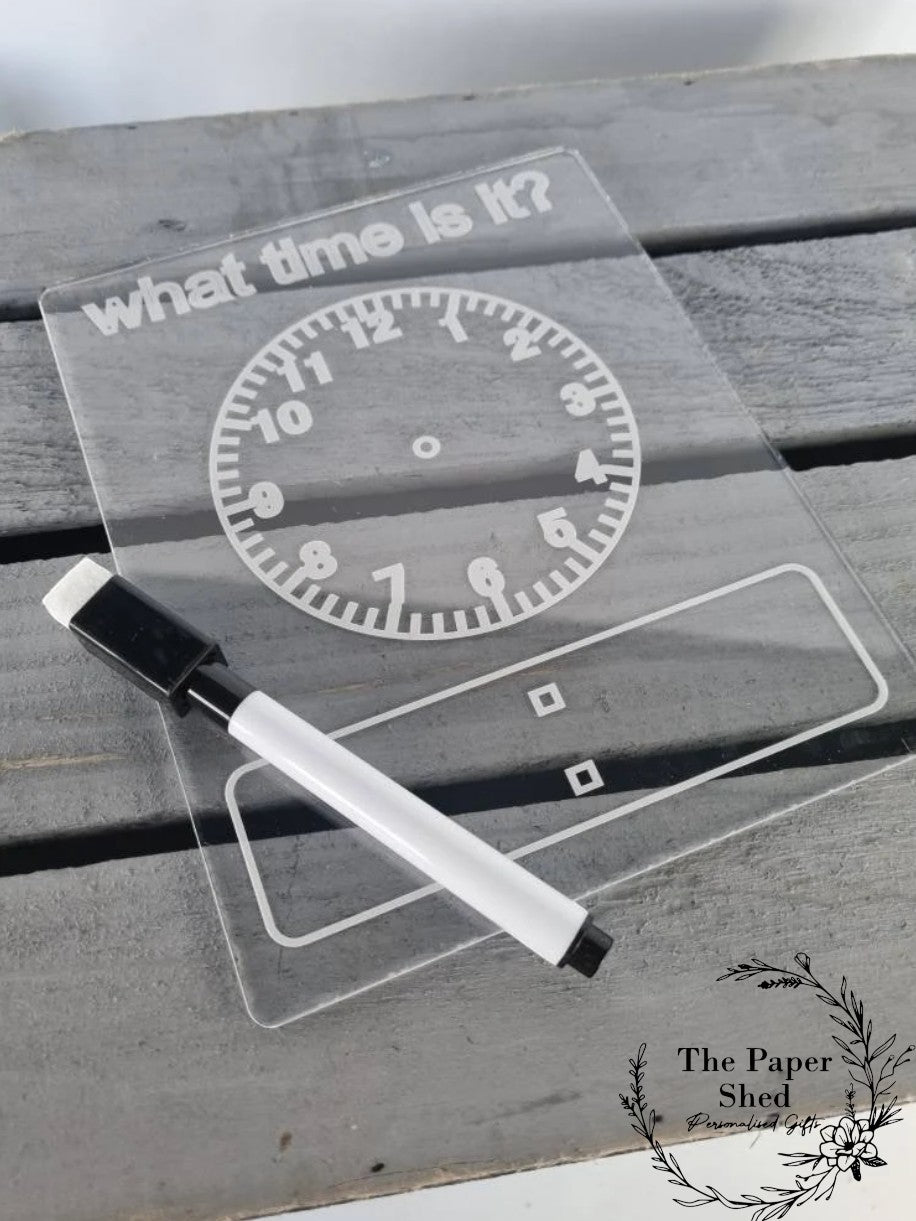 Each board is made out of 3mm acrylic and comes with a wipe board pen.