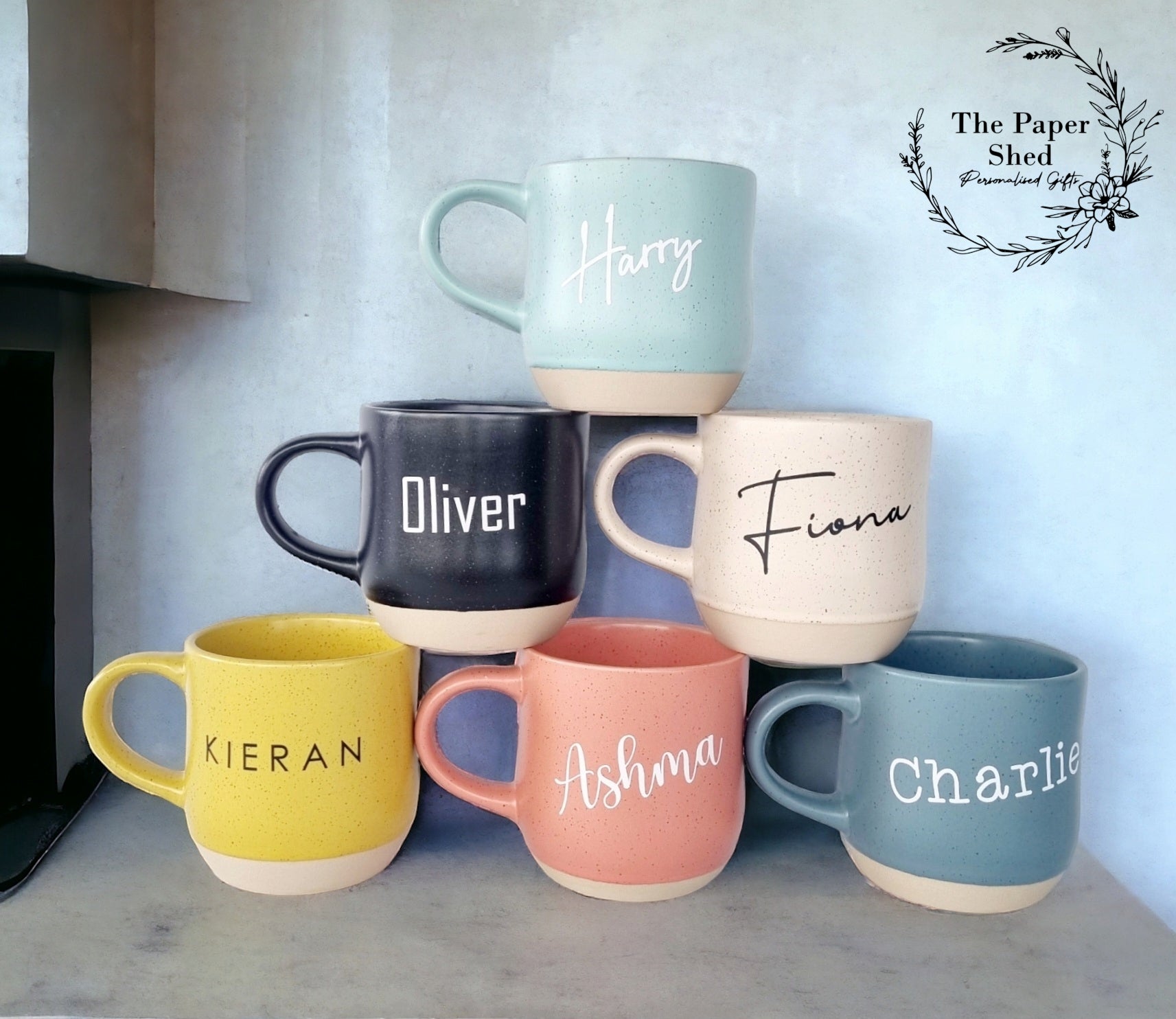 This mug will come personalised with permanent UV printed designs. The longer the name the smaller the text may become. Please note these are not suitable for the microwave or dishwasher. approx 400ml As these mugs are hand made each one is unique and may have minor imperfections in the paint glaze due to the kiln process. If you have any concerns about this please contact us prior to ordering.