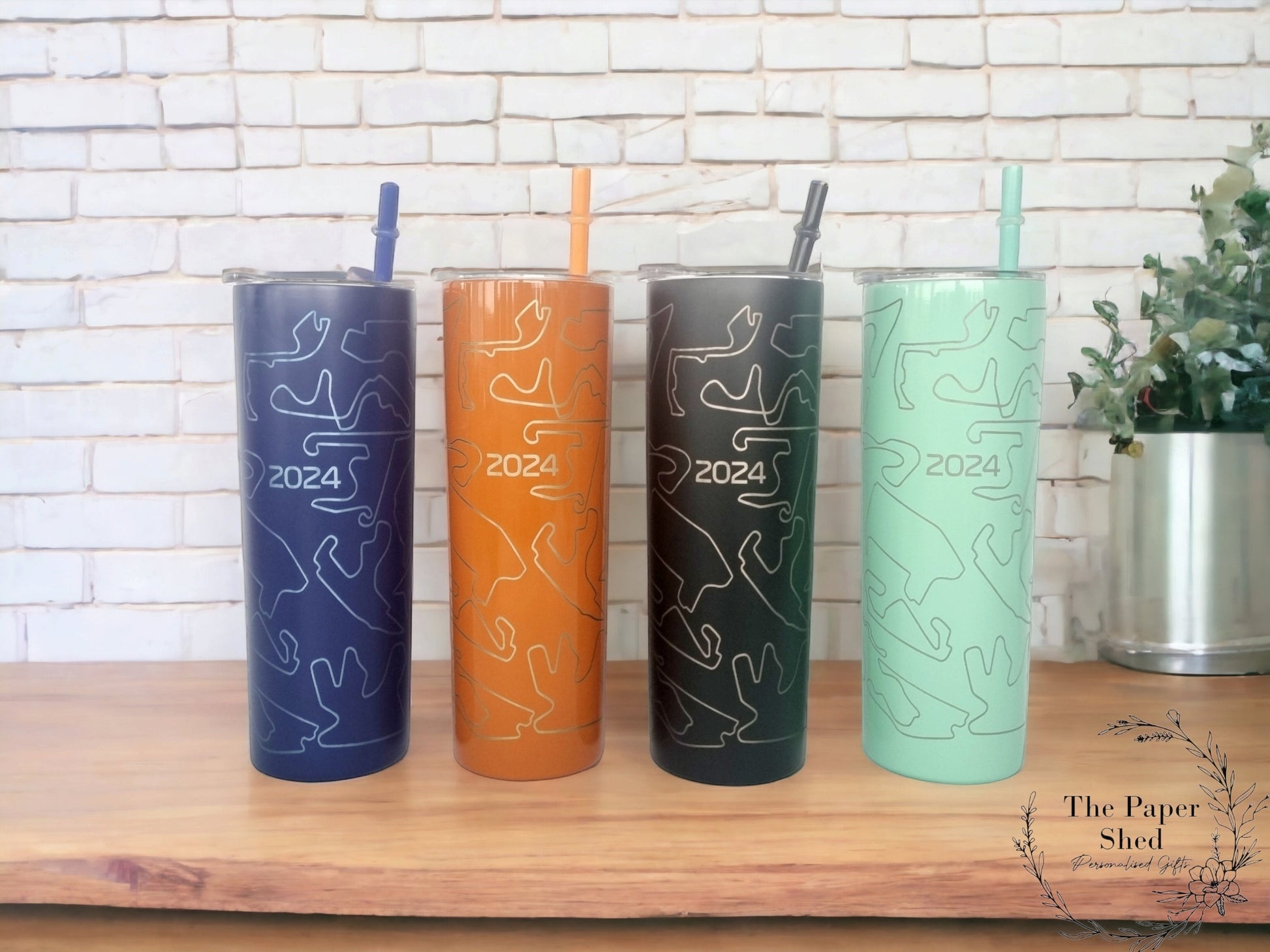 F1 inspired Silverstone Bottle Tumbler With Straw Engraved Tracks Formula