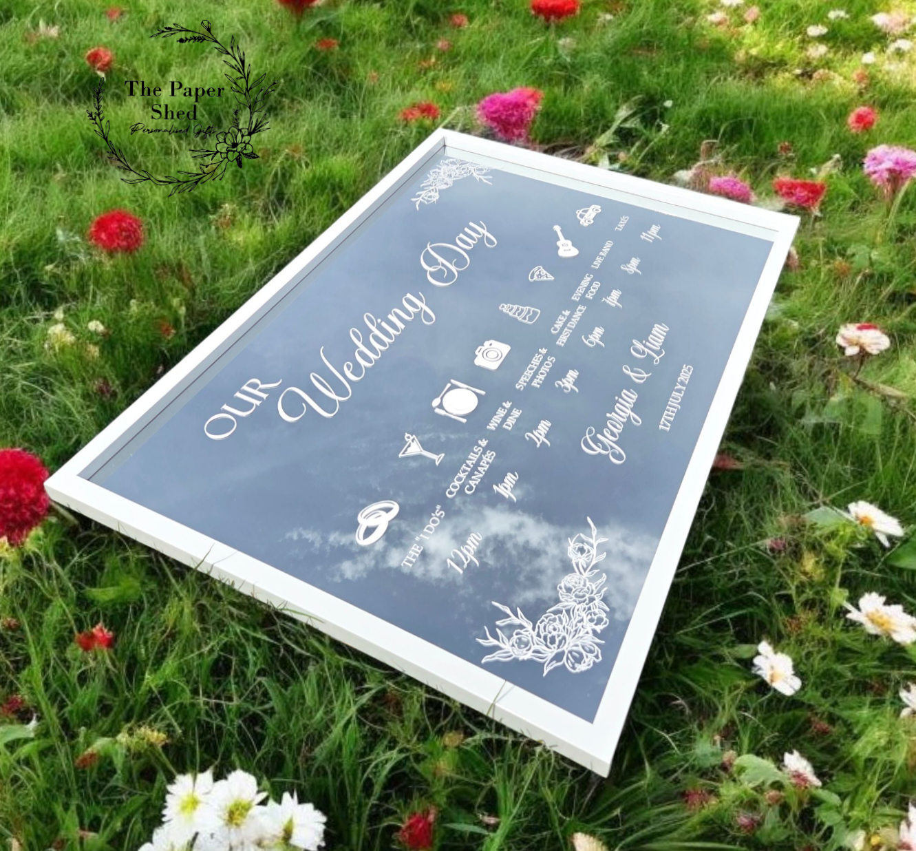 Wedding Day 'Order of the Day' White Framed Mirror First Dance Ceremony Service Reception Timetable