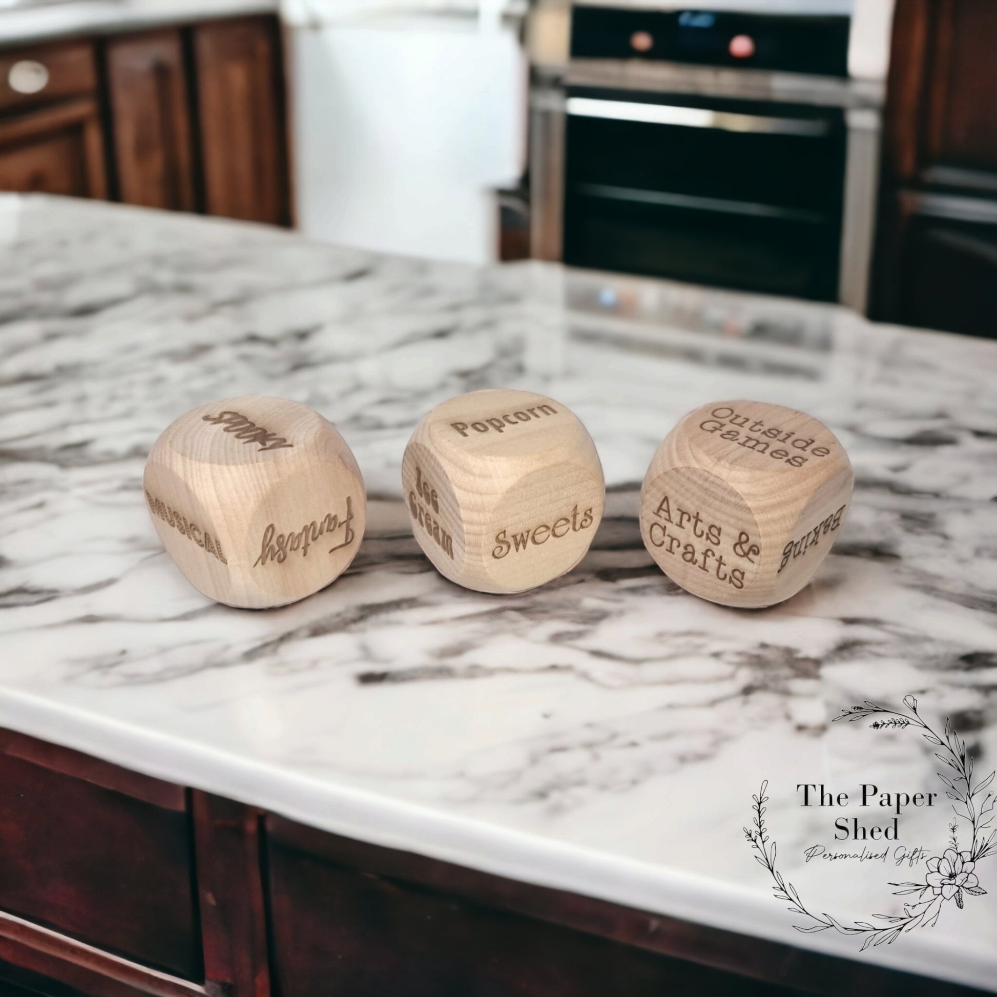 These dice are engraved with multiple choices to make those hard decisions. They are approx 5x5x5cm and can be purchased as a set or singles.