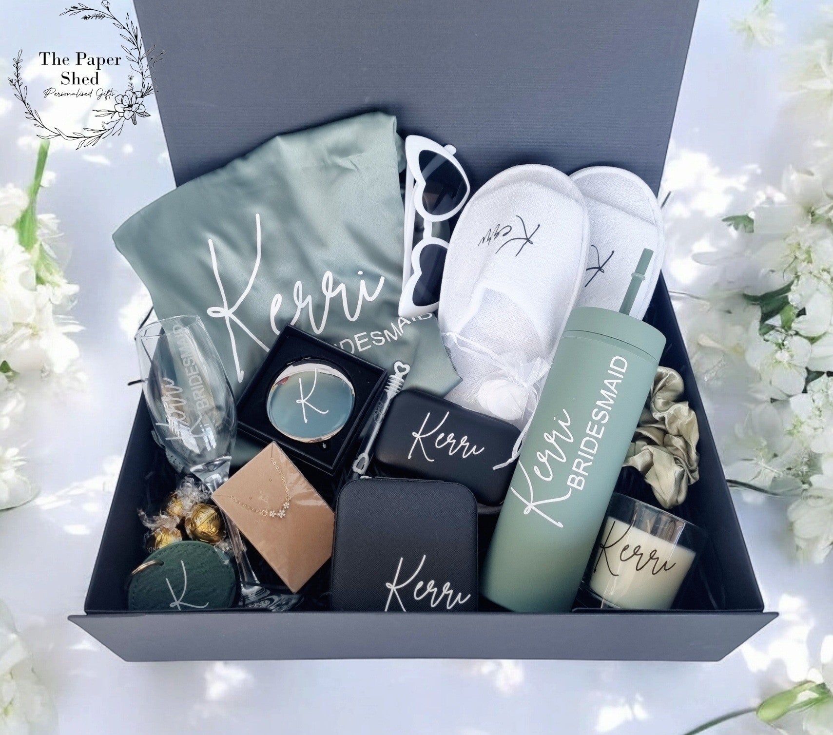 Luxury Bridal Bridesmaid Gift Hamper Box Robe Personalised With Name Glass