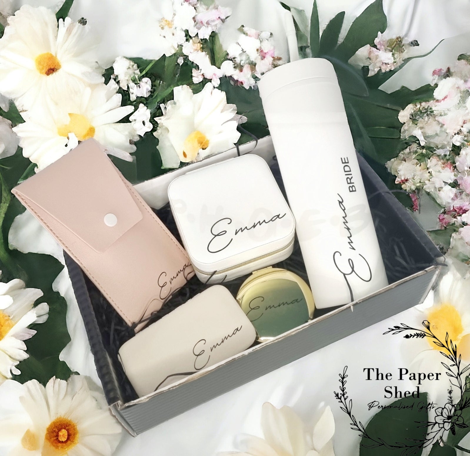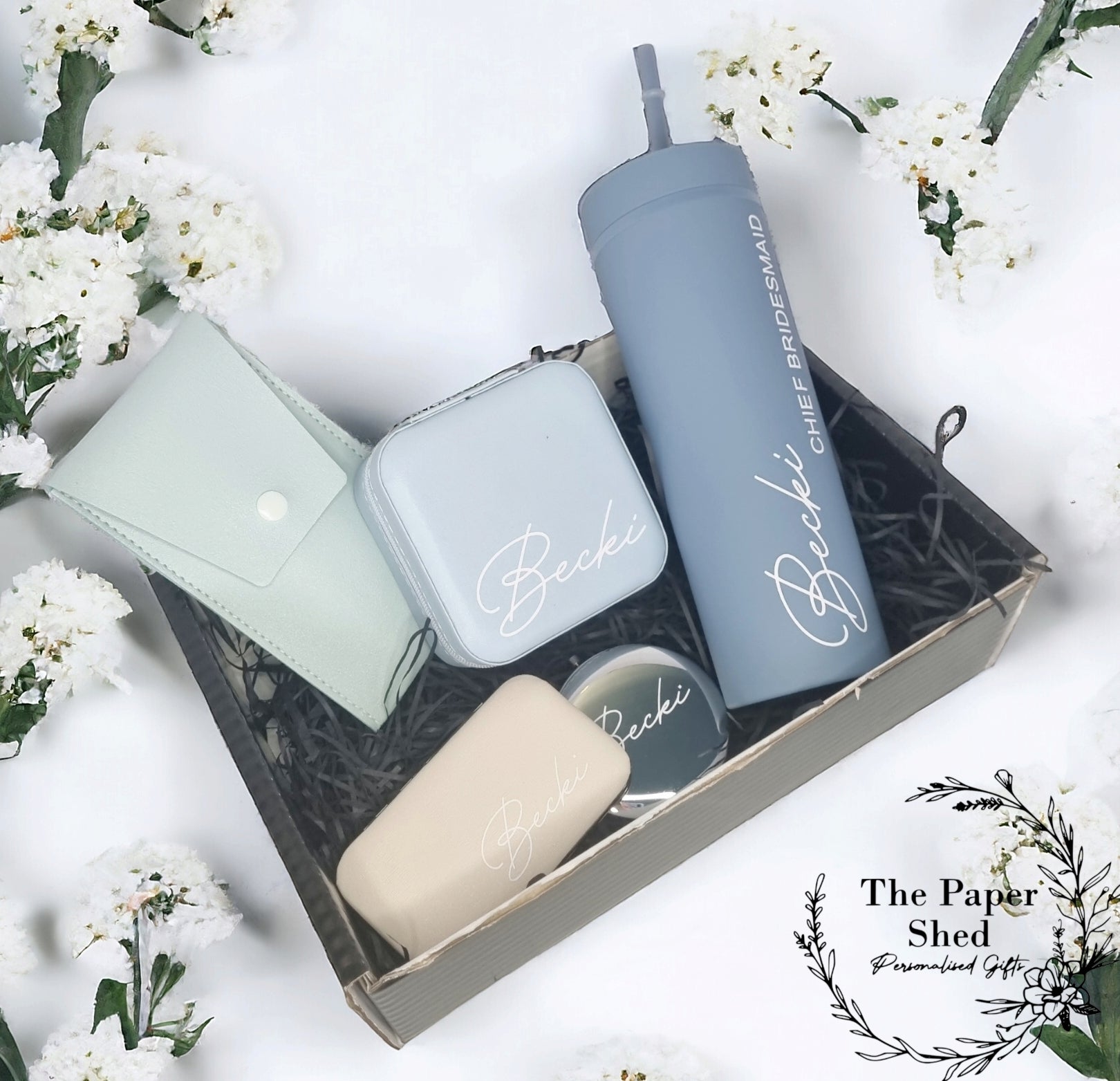 Personalised - Bridal Gift Set - Birthday Present -Bride-Bridesmaid- For Her- Hamper - - Green - Gold - Beige -Wedding-wedding gift favour