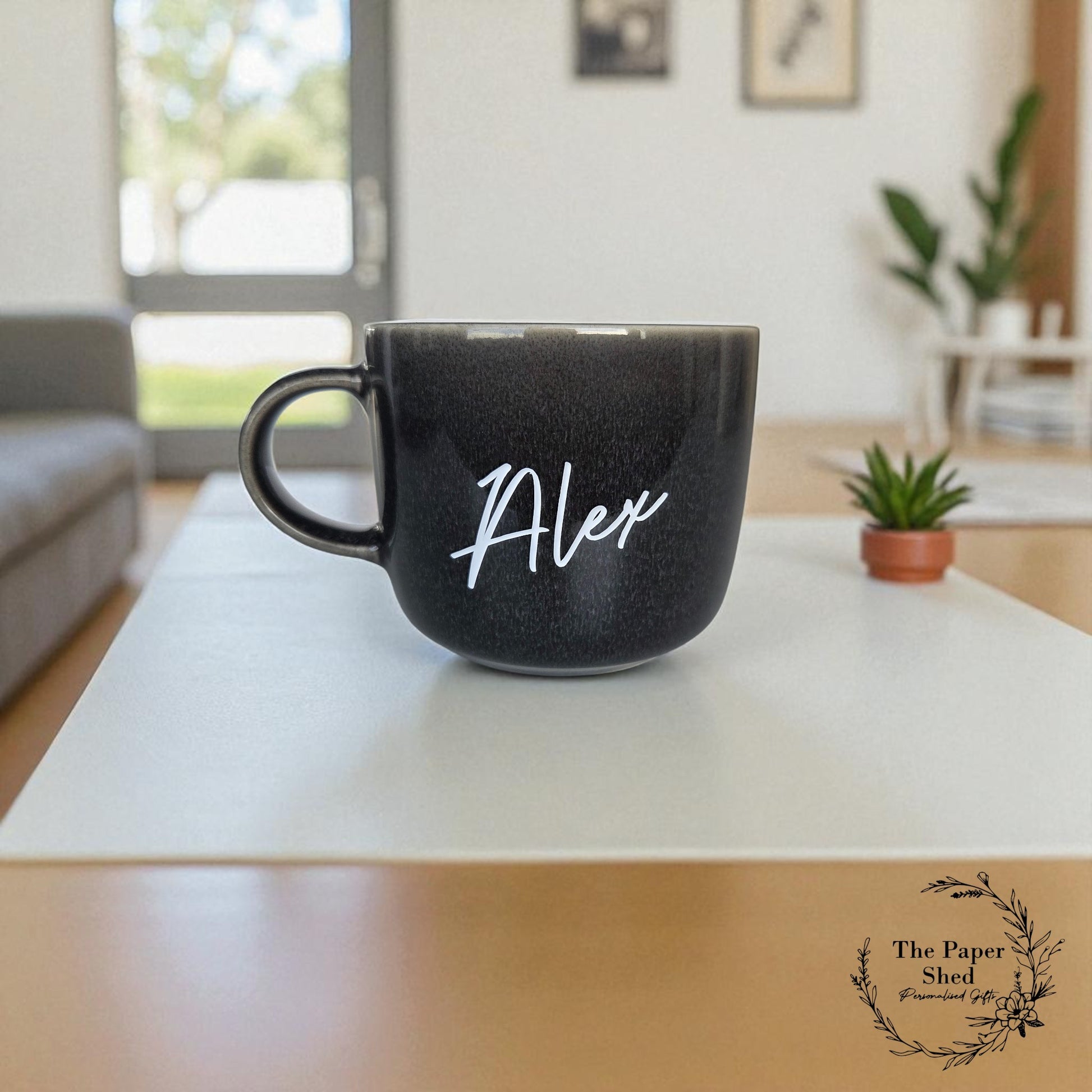 Personalised Drinking Mug -Stylish -Great gift for co-workers, family and friends -350ml capacity Give a great gift with a personal touch with this ceramic mug. Personalised with permanent, UV printed designs, giving a smart finish. Please note: The longer the name the smaller the text may become. These are not suitable for the microwave or dishwasher. Next day delivery available (this does not alter our make-time)