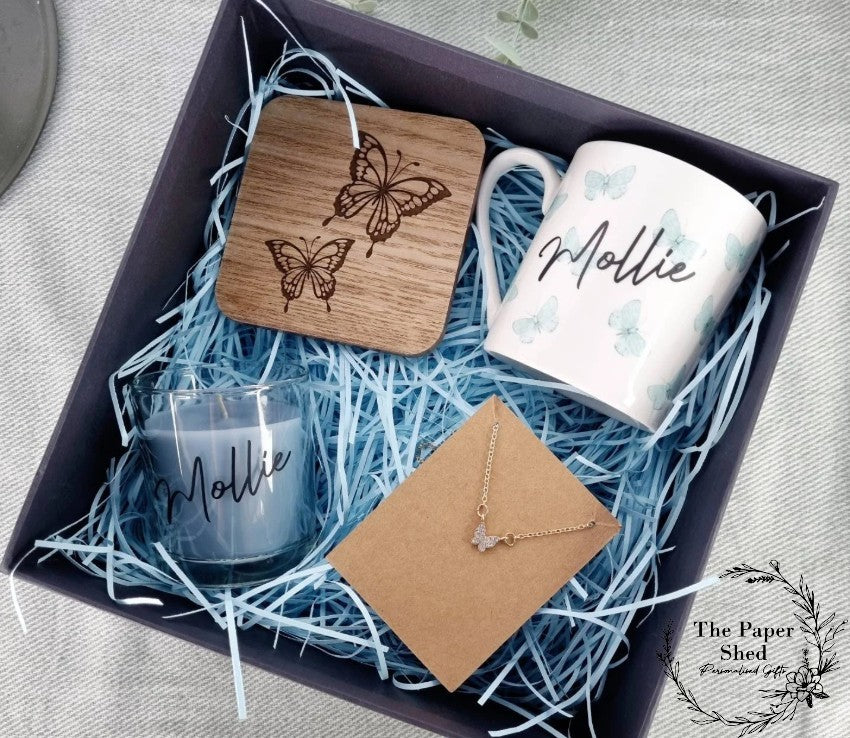 Personalised - Gift Set - Birthday Present - For Her - Birthday - Hamper Butterfly Themed - Butterfly Flowers
