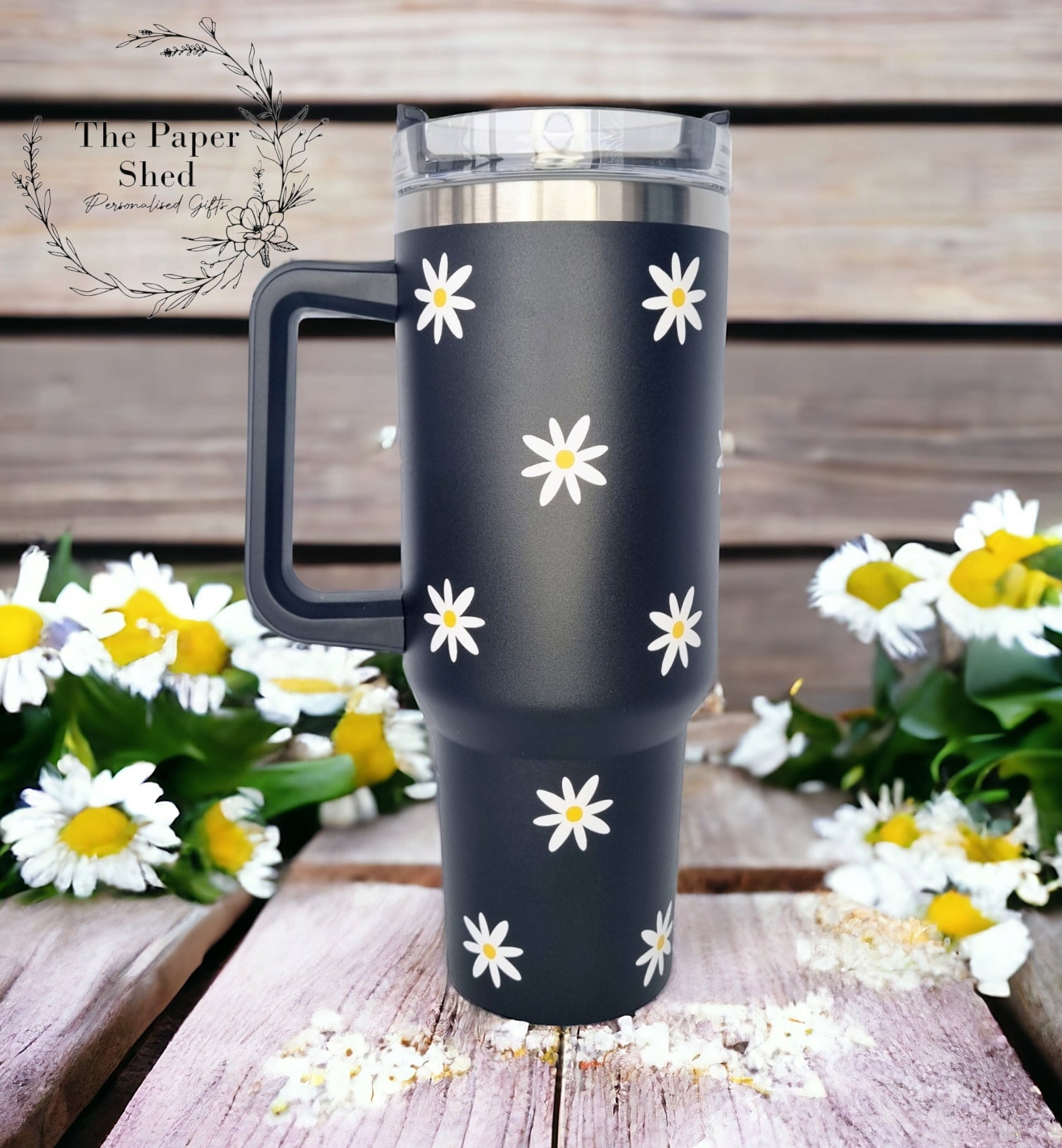 Travel Mugs Personalised Large Thermal 40oz Cups Daisy Print