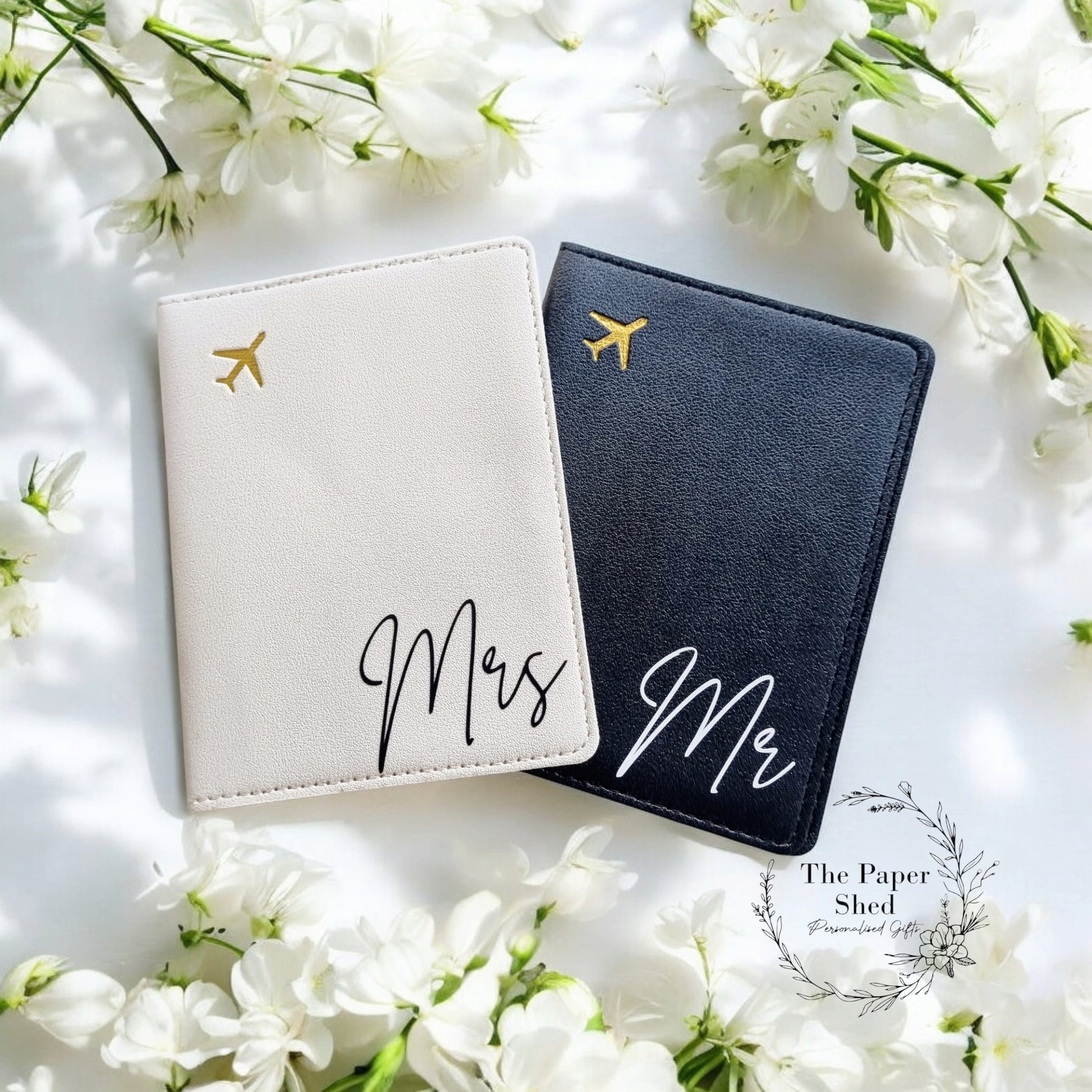 Wedding Couples Matching Passport Covers Honeymoon Mr & Mrs